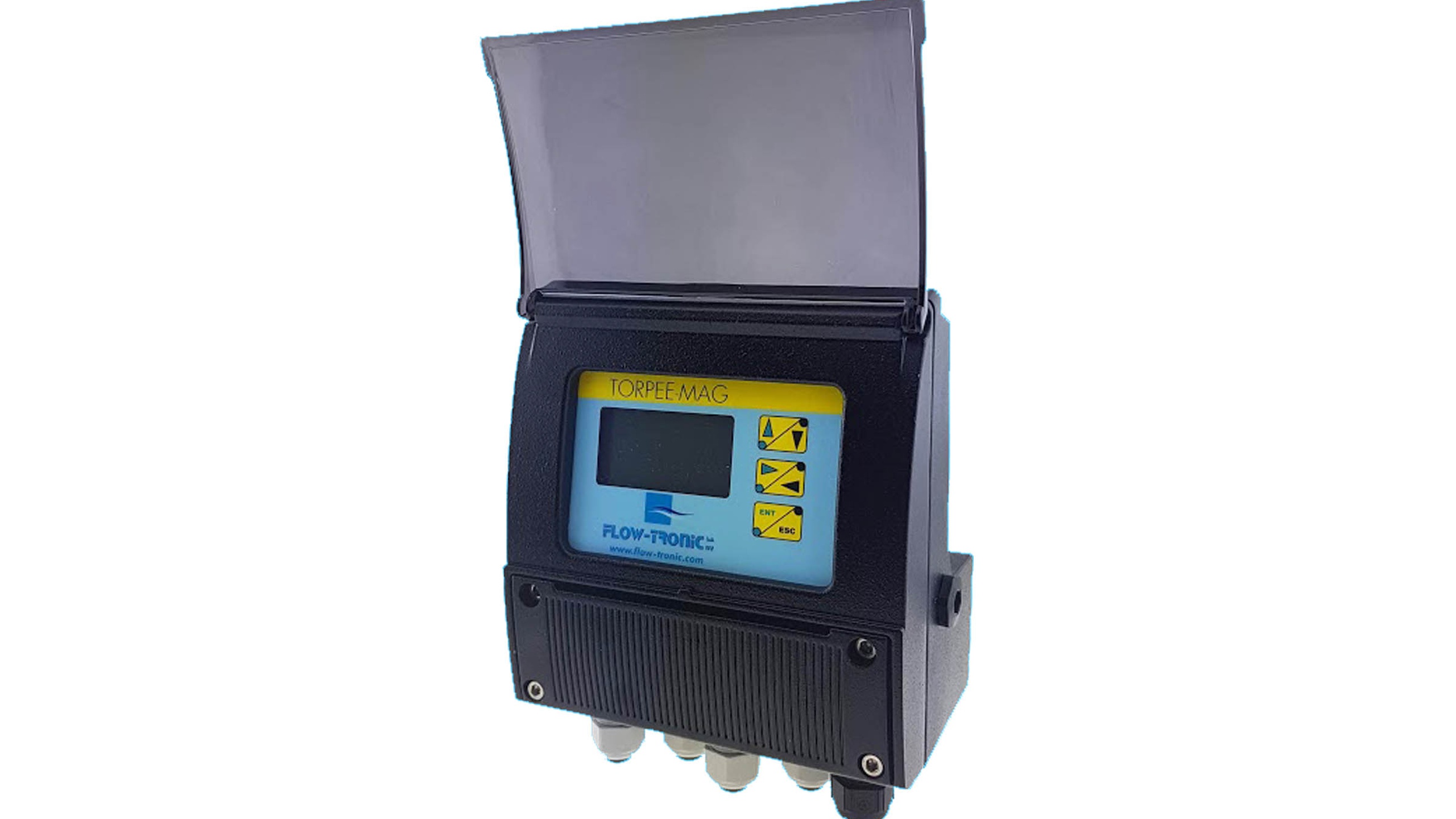 The standard model includes: an IP67 enclosure; a 3-key numerical keypad; a graphical backlit LCD display, 100-240 VAC or 12-48 VDC power supply, two 0/4-20/22 mA output and two Pulses/Alarm outputs.